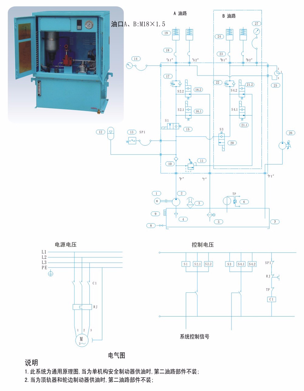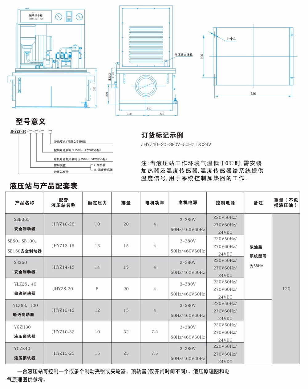 YZ(J)型液压站主要作为YJGQ系列液压夹轨器、YLBZ系列液压轮边制动器、YDGZ系列液压顶轨制动器驱动动力源;多功能复合控制方式,在断电检修时,依靠人力实现上压过程。